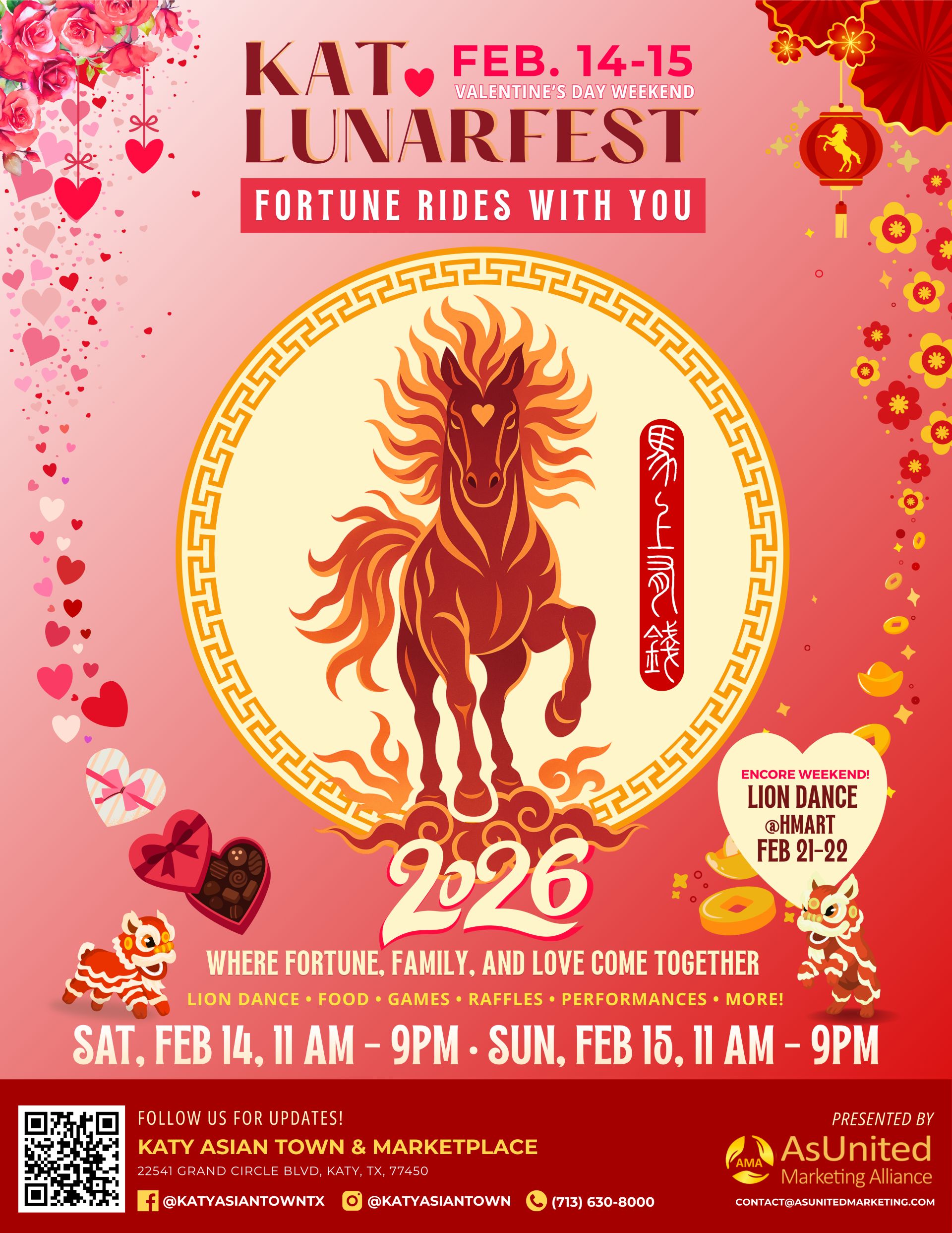 KAT LunarFest 2026, themed “Fortune Rides With You – Year of the Fire Horse,” will take place over Valentine’s Day weekend at Katy Asian Town, welcoming families, young adults, and culture enthusiasts from across the Greater Houston area.