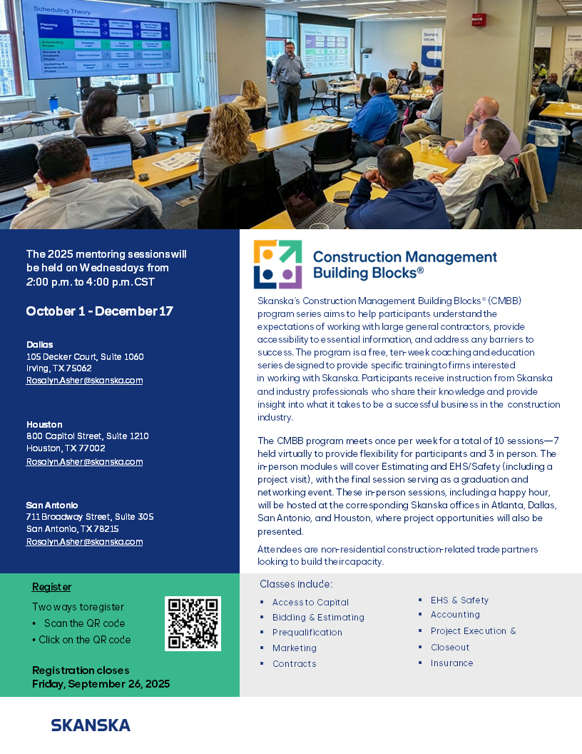 Skanska’s Construction Management Building Blocks (CMBB) Program – Applications Now Open
