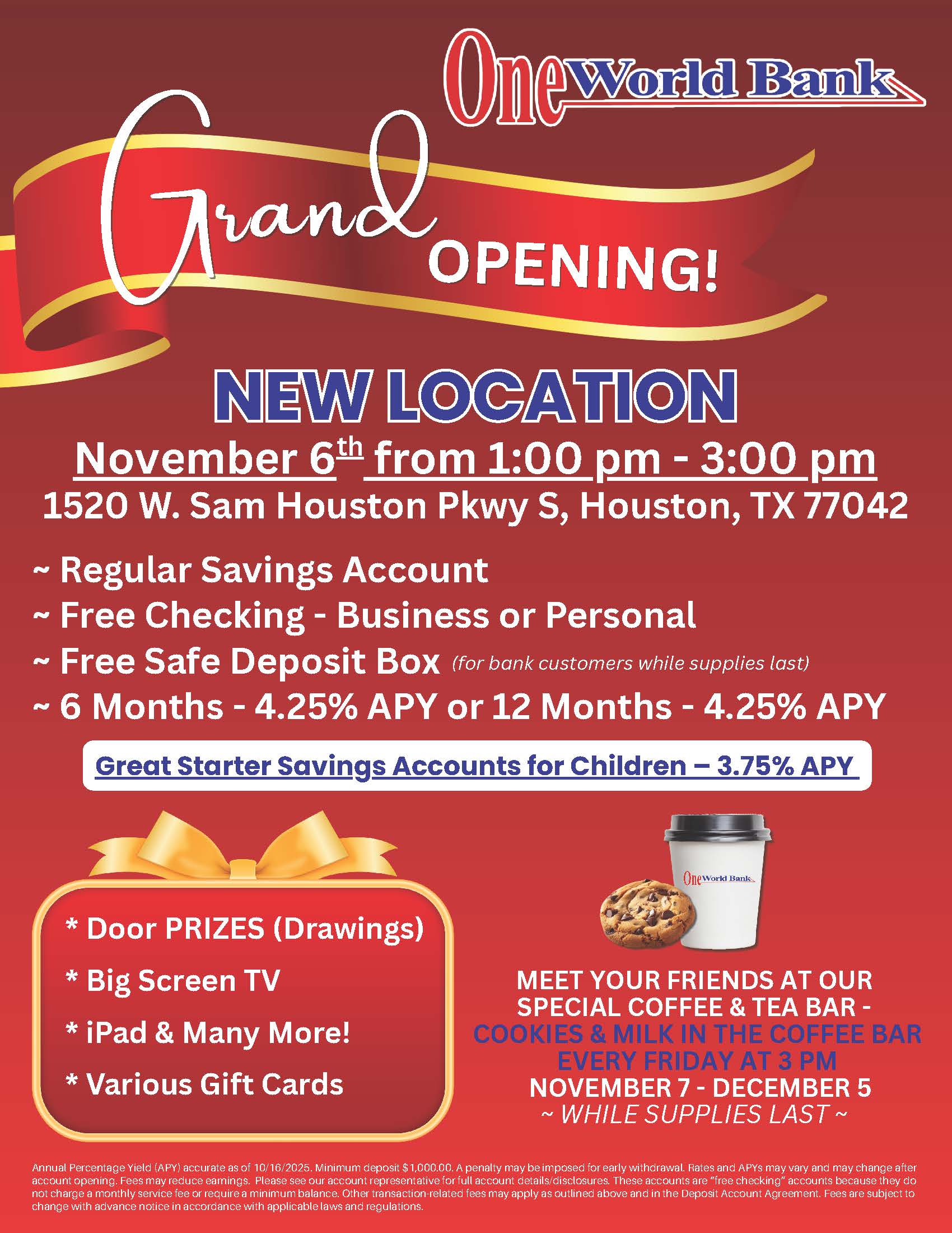 Join the Asian Chamber of Commerce at the Ribbon Cutting ceremony of the Grand Opening at: 1520 W. Sam Houston Pkwy S, Houston, TX 77042