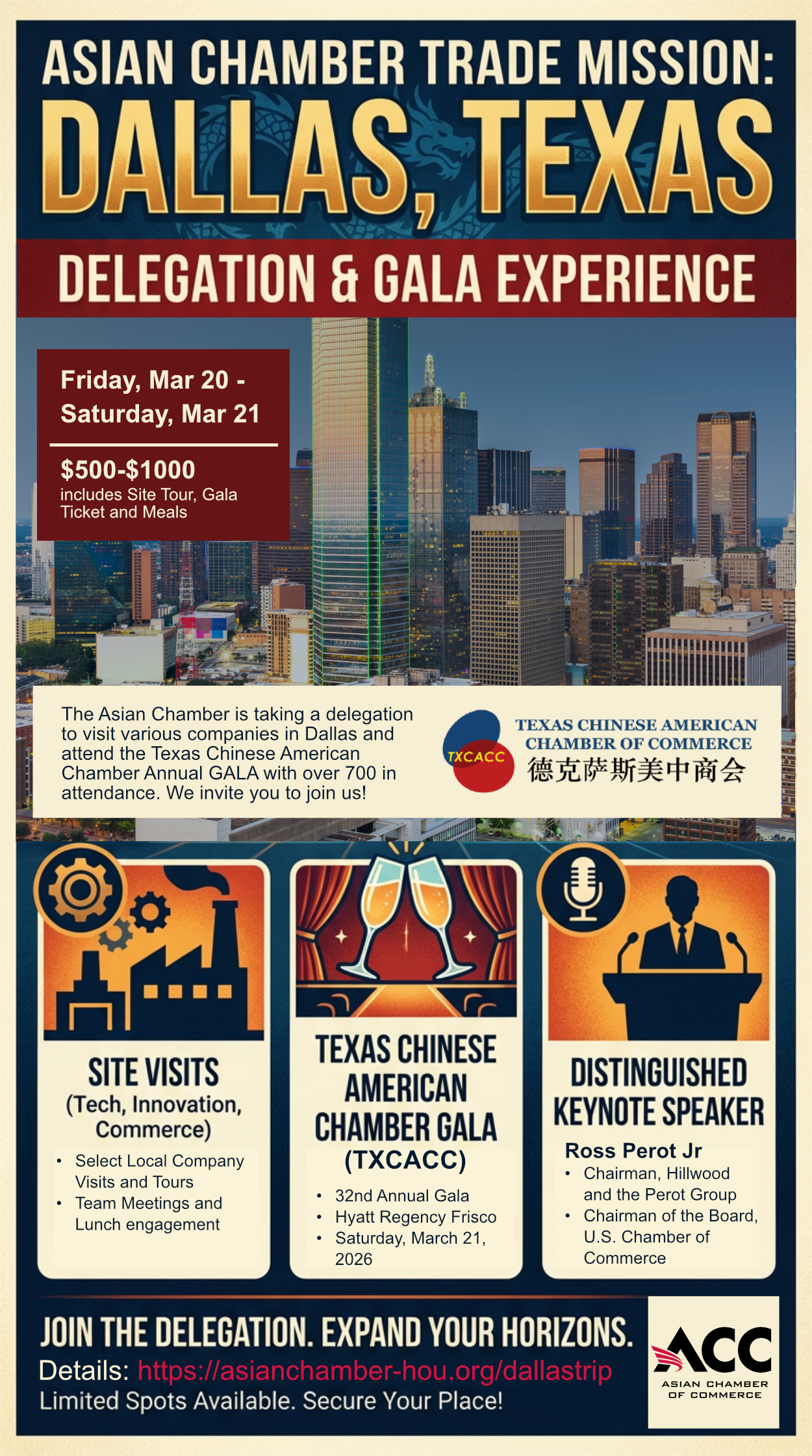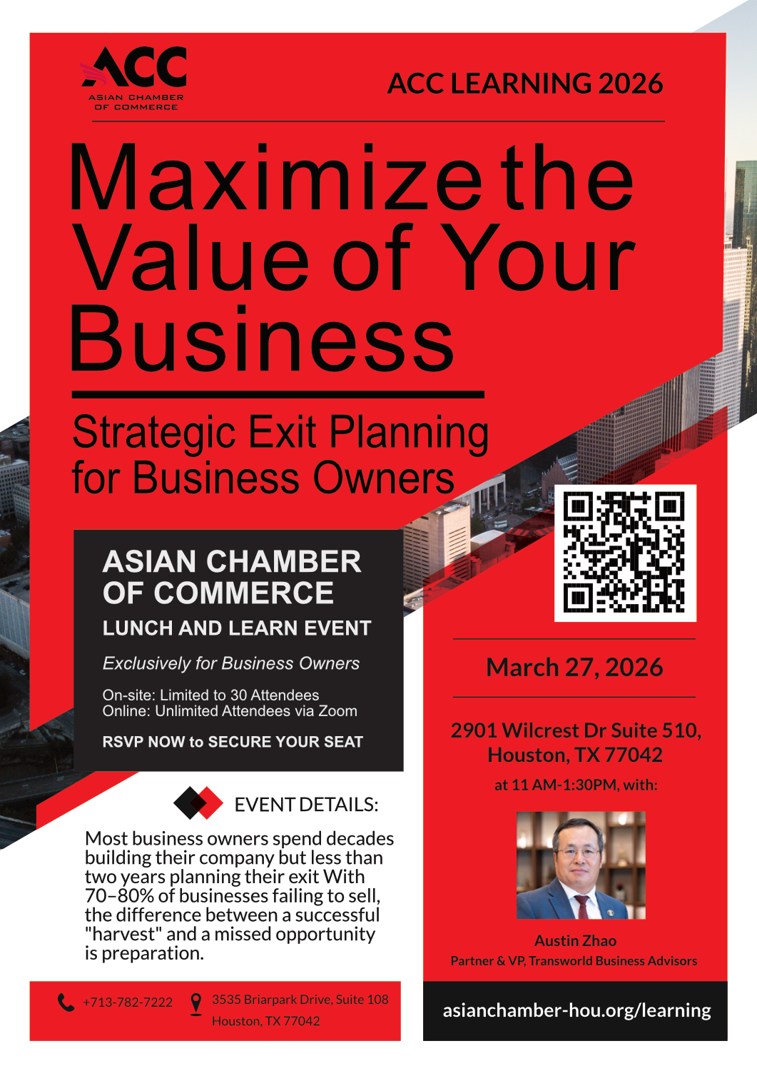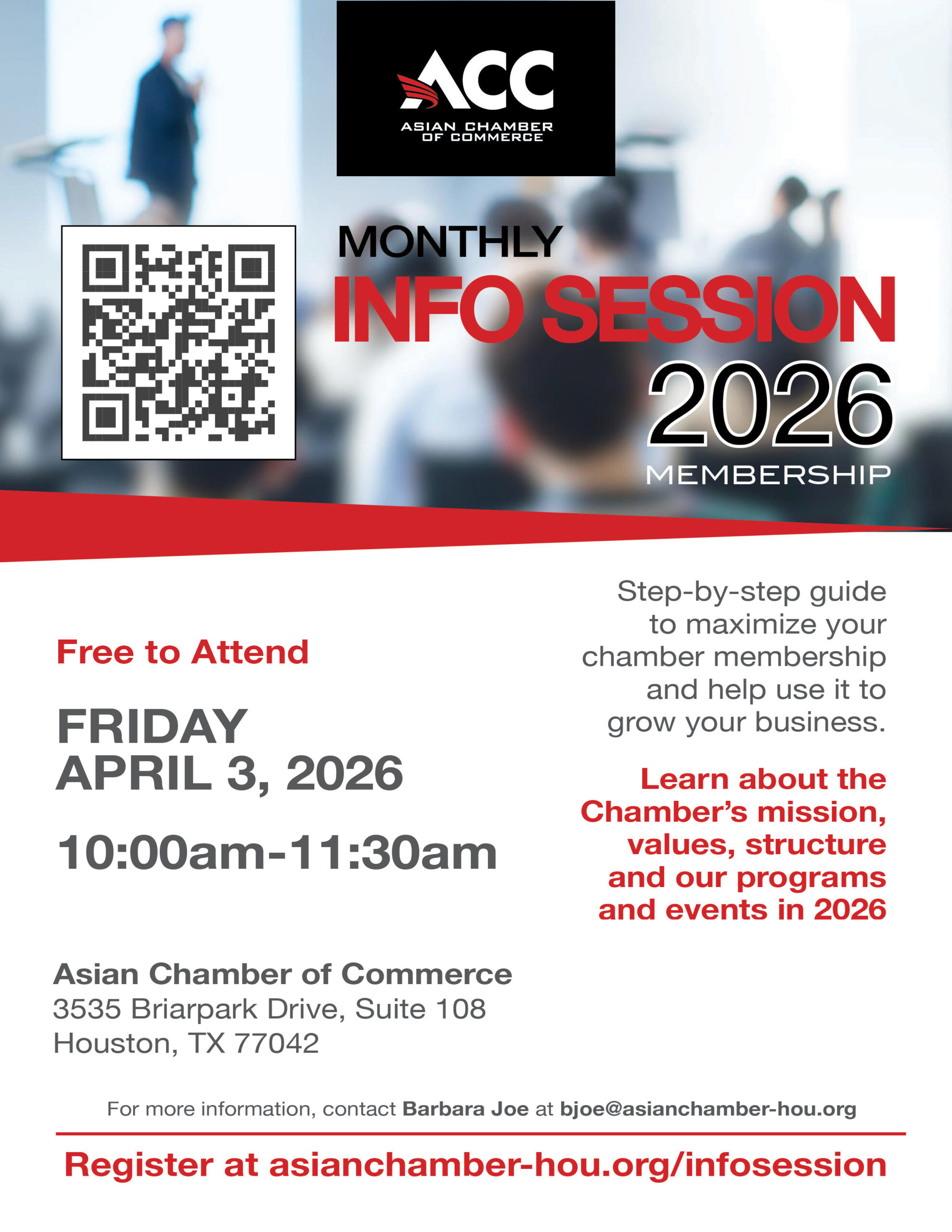 The Asian Chamber Foundation will award ten $2,000 student scholarships to deserving and academically oriented graduating High School Seniors in the Greater Houston area to aid in furthering their education. The 10 scholarship recipients were evaluated on their academics, GPA, community service or employment, school activities, and a written essay. We encourage those qualify to apply.
