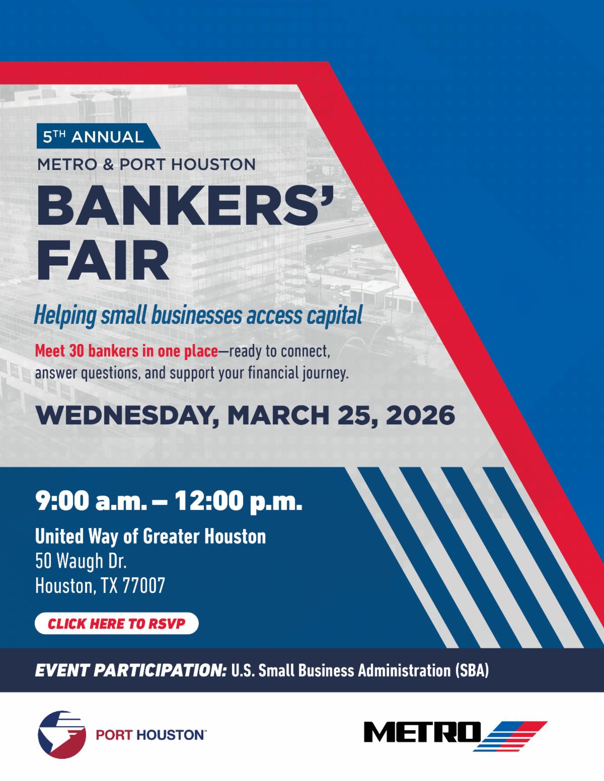 During each session, SBA Houston will present on the resources available through the U.S. Small Business Administration including information on counseling, capital, contracting, and crisis.